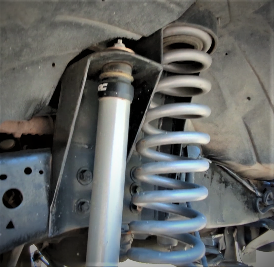 The key to gaining articulation and travel without altering the ride height of the vehicle is extending the coil buckets as high into the truck as you can stomach. Shown here, the tops of the coils are nearly at the top of the fender liners (pass. side); the driver side coil is only a few millimeters away from the battery (extending above the liner).