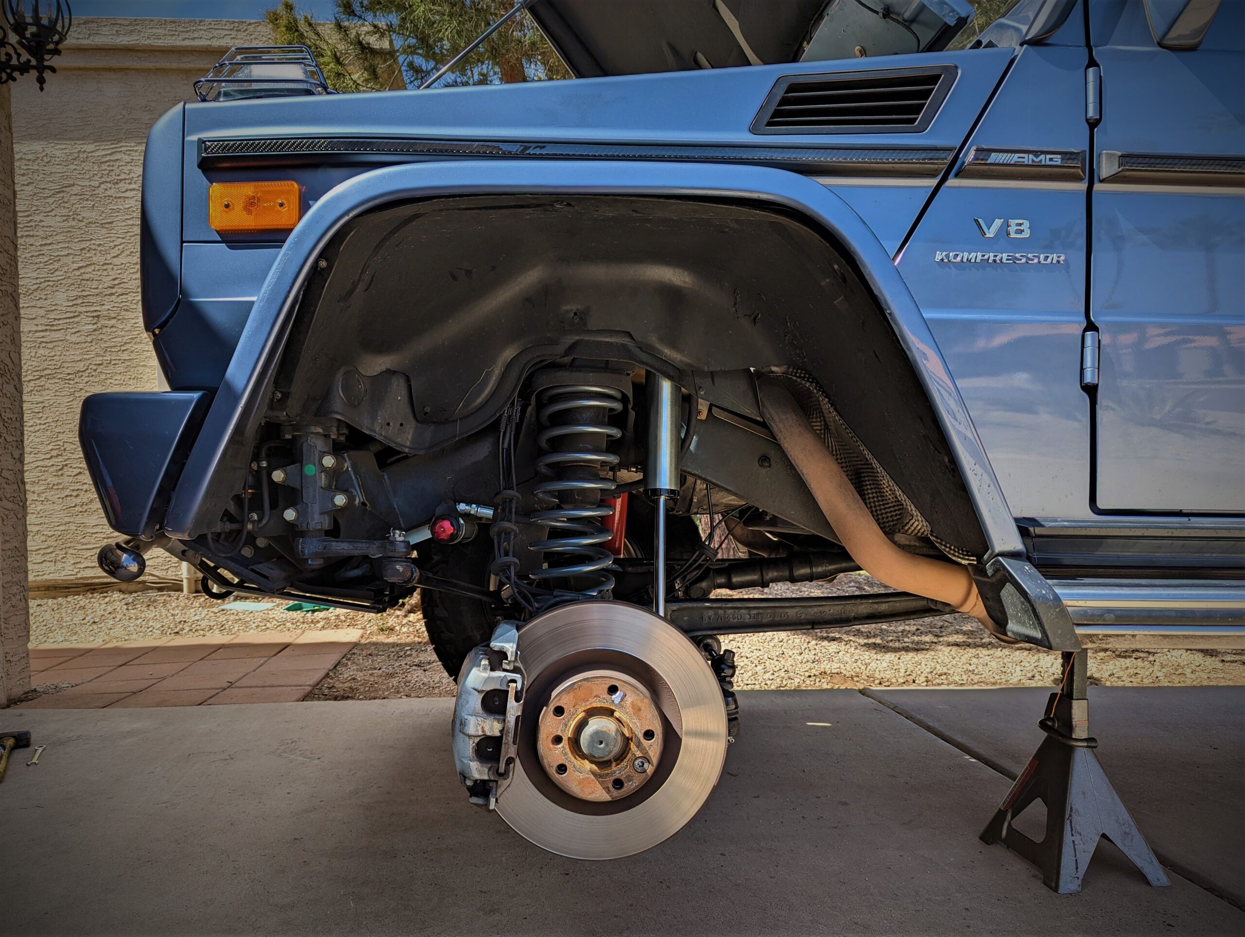 Final setup: While the progressive JWO springs would have been delightful, they are rated for loading an extra 1000 lbs of gear and cargo, so they are out in place of the factory rears with 40 mm spacers; this gives a 50/50 split on articulation (without the sway bar).